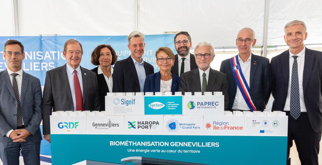 Le mardi 18 septembre Jean-Jacques Guillet, Corentin Duprey, Président du Syctom, Patrick Ollier, Président de la Métropole du Grand Paris, Sophie Deschiens, Vice-Présidente du Sigeif et Conseillère régionale déléguée à la Région circulaire et amie des animaux, Patrice Leclerc, Maire de Gennevilliers, Laurence Poirier-Dietz, Directrice générale de GRDF, Stephane Leterrier, Directeur général adjoint de Paprec et Alexandre Brugère Préfet des Hauts-de-Seine, ont posé la première pierre de l'unité Biométhanisation à Gennevilliers.